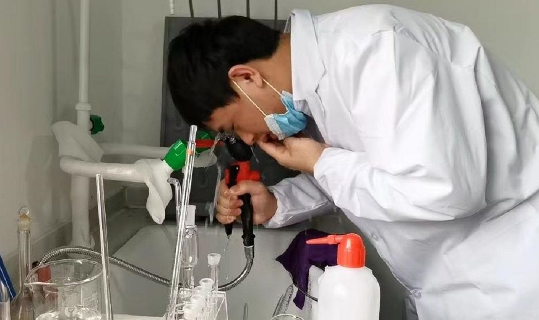 本次消防應急救援演練分別從火災發(fā)生時報警、接警,組織人員從逃生通道迅速撤離、正確使用滅火器進行撲滅三個步驟展開。危險化學品事故應急處理由設備管理員楊烈進行教學演示,包括濃酸濃堿濺灑事故、中毒事故、火災事故、化學品泄漏事故等四個方面。