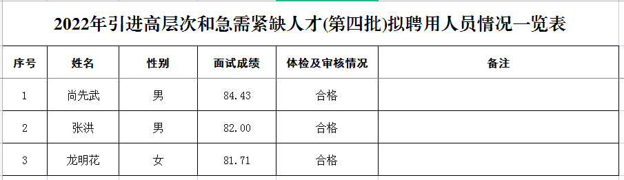 集團公司2022年引進高層次和急需緊缺人才(第四批)擬聘用人員公示