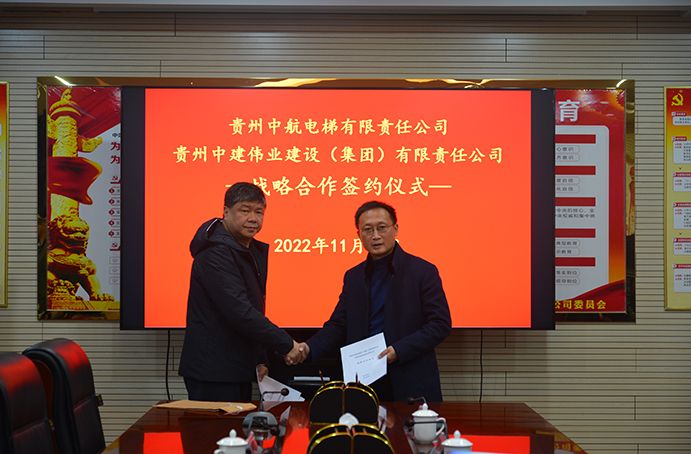 2022年11月30日,貴州中建偉業(yè)建設(shè)(集團(tuán))有限責(zé)任公司黨委副書記、總經(jīng)理馮安翔,在集團(tuán)公司17樓會(huì)議室熱情接待貴州中航電梯有限責(zé)任公司黨委書記、董事長(zhǎng)胡明一行,并簽署戰(zhàn)略合作框架協(xié)議。集團(tuán)公司黨委副書記王莉,黨委委員、副總經(jīng)理王引明出席簽約儀式。