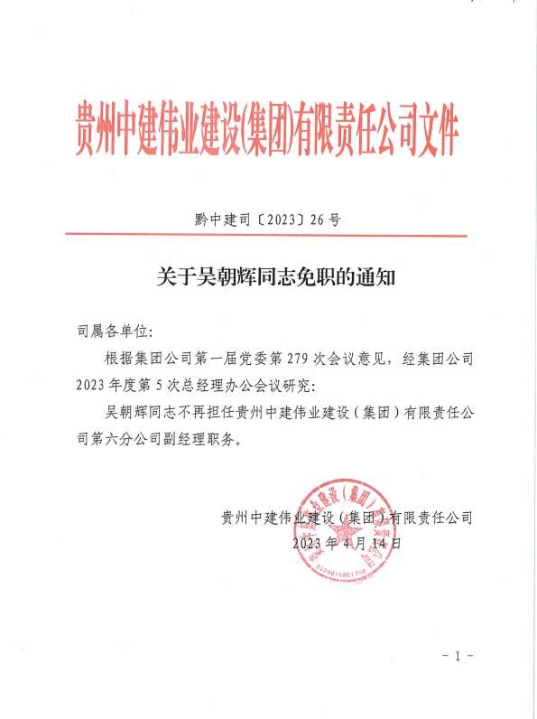 關于吳朝輝同志免職的通知